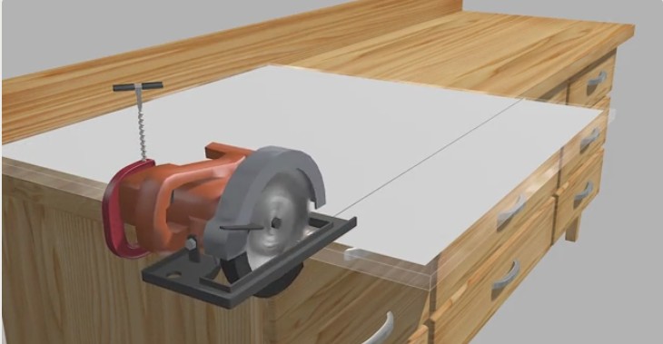 3.將要切割的直線對(duì)齊桌子邊緣,同時(shí)要與鋸片平行。