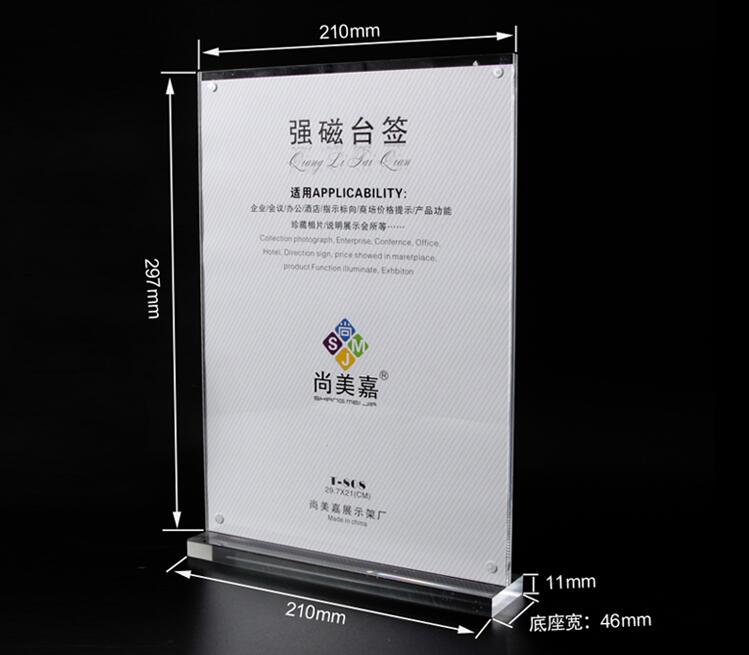 適用范圍:亞克力強(qiáng)磁臺(tái)簽適用于企業(yè)會(huì)議、辦公酒店、餐廳、產(chǎn)品功能說(shuō)明等;還可以做成多功能雙面亞克力展示架